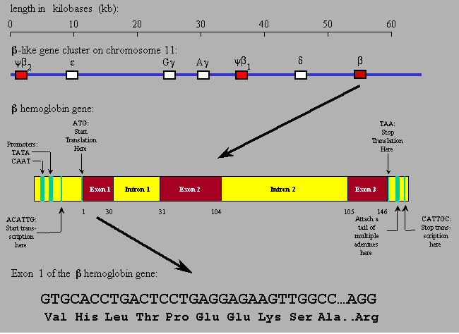 Figure 3.8: The beta cluster of hemoglobin genes.